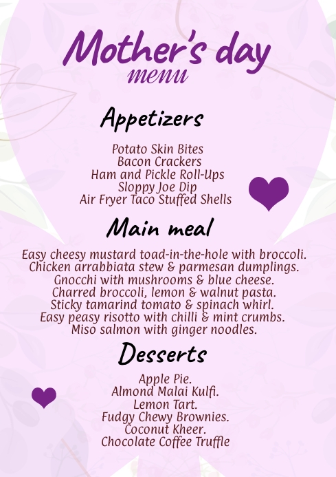 MOTHER’S DAY MENU 2023 2025 Template | PosterMyWall